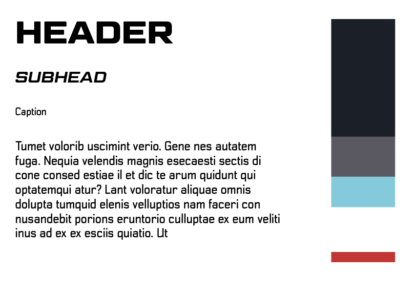 Because I knew that I wanted my layout to look like a datapad, I had to pick typefaces that would the theme. My first thought was Eurostile because that was what the original Aurebesh typeface was based off of; however, I felt that choice was a little too on the nose and didn’t love how it looked. I ended up settling on Geom Graphic Bold (all uppercase) for my headers and Transmute for my body text. These fonts felt science fiction and unique enough for my spreads.
