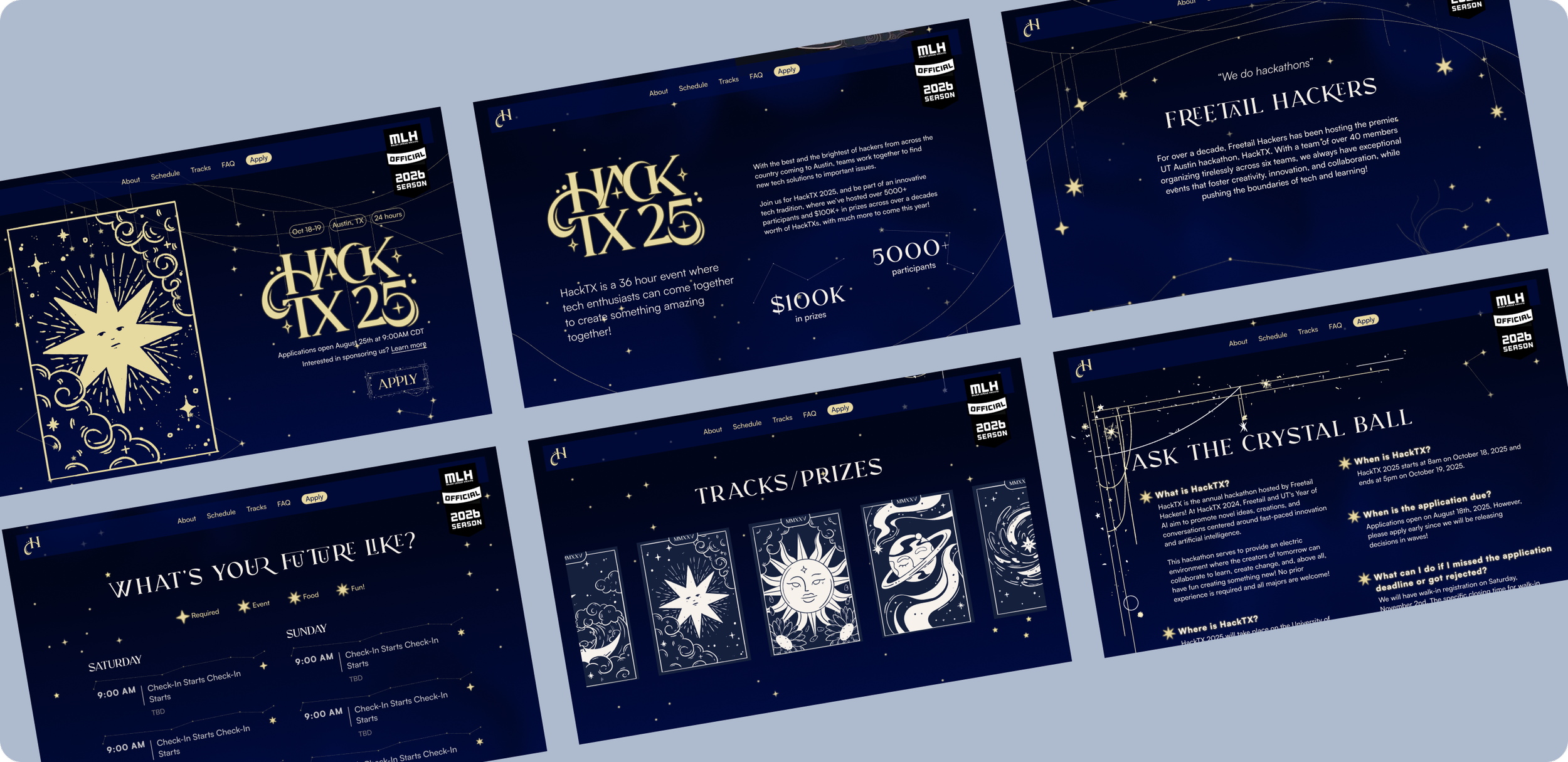 Afterward, we developed a high-fidelity prototype of the site, creating custom graphics to bring our celestial theme to life. Once the design was finalized, we handed it off to the development team, who brought the vision to reality!